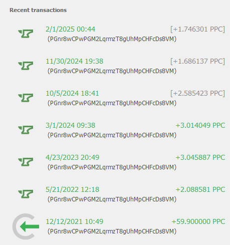 the about page on peercoin wallet says 0.15.1.0 anisoptera and there are no transactions with question marks, just one recieve and 6 mints (though 3 of these mints have a bracket around the number and it is greyed out)